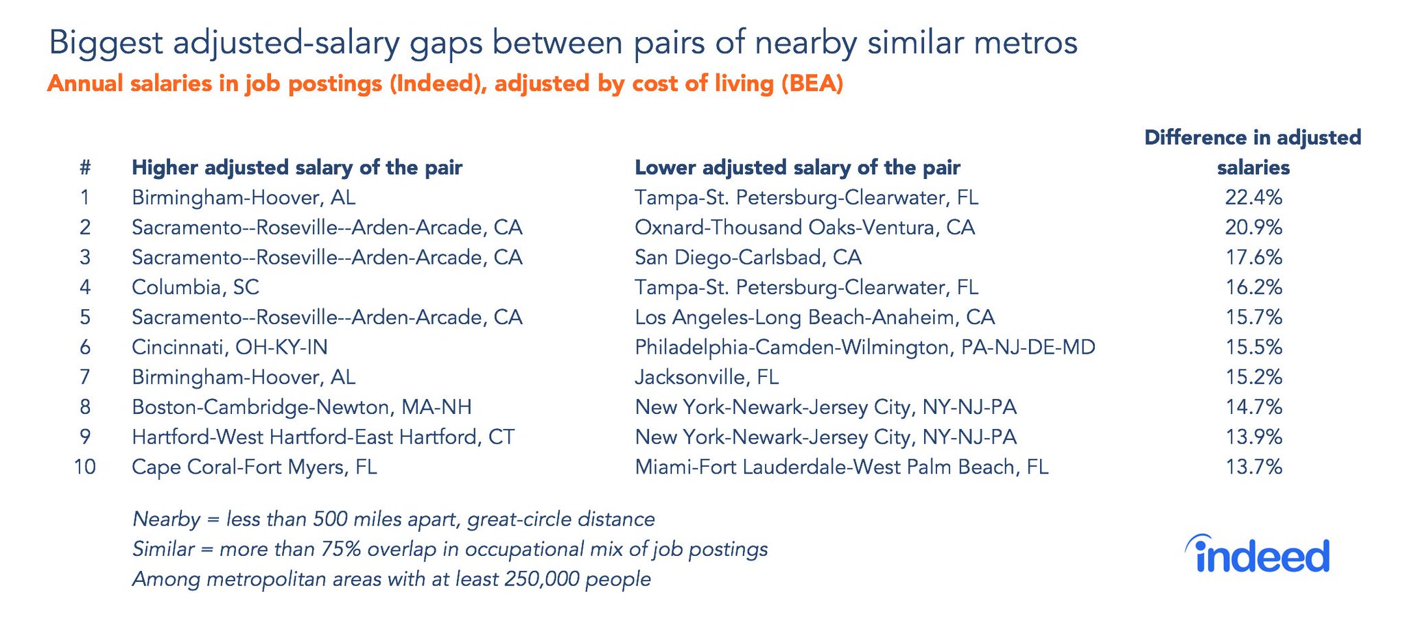 Indeed On Twitter Looking To Make A Move We Found The Metros That Are Within 500 Miles Of Each Other With A Similar Job Mix To See Where You Can Get A Higher Adjusted Salary Https T Co Aisuyycqct Https T Co Pdggo3l3hn Twitter